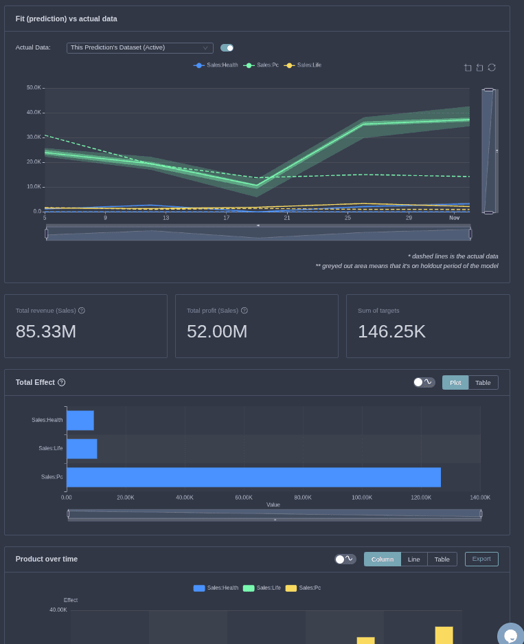 Run a Prediction in Alviss AI to forecast absolute future outcomes like sales based on modified variables.